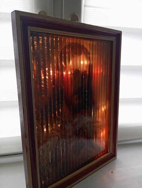 Dziadkowa pamiątka Matki Boskiej z Dzieciątkiem Jezus z oświetleniem 3D. Stan dobry lekko draśnięty znakiem ...